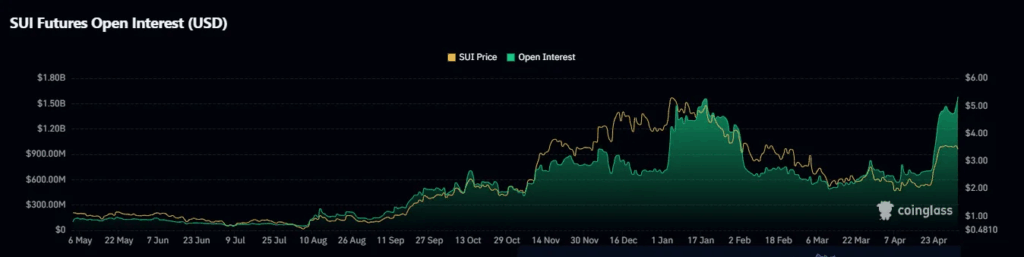 尽管链上数据显示看涨势头正在降温,但值得注意的是,SUI在过去24小时内实现了未平仓合约的新高,表明该加密货币的需求创下新高,可能预示着在市场看涨阶段,SUI可能会经历更多上涨。