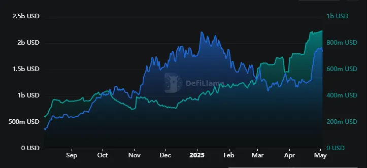 具体来看,TVL从4月9日的11.6亿美元飙升至5月2日的19.2亿美元,接近今年1月初达到的22.1亿美元的历史高点。