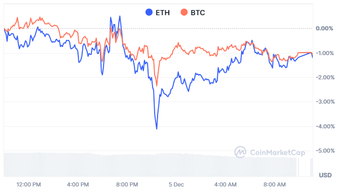 晚间时段ETH录得最大振幅,而BTC波动相对温和。夜间价格走势延续这一模式,ETH持续在更宽区间震荡。至清晨时分,尽管ETH波动更大,两大资产最终回归相近的收益水平。