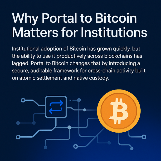 市场缺失的是安全基础设施。机构希望在不牺牲自我托管、合规性和可审计性的前提下直接参与数字资产经济。Portal to Bitcoin填补了这一空白,它支持比特币的原生化、最小化信任跨链转移,消除了托管方、封装资产和合成代币需求。机构首次能真正将比特币视为可验证、完全可审计的链上生产性资产。