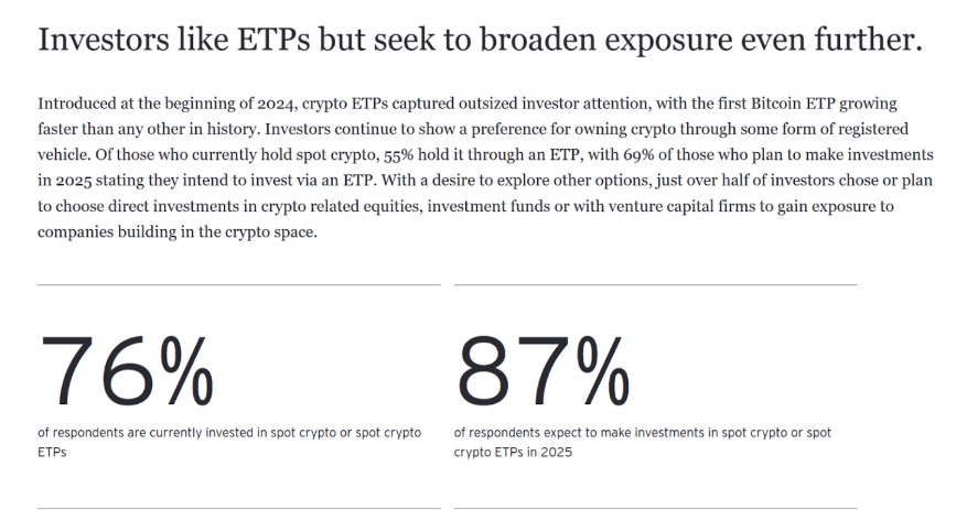 安永帕特农与Coinbase近期对350家机构投资者的调查清晰地揭示了这一缺口:近所有受访者计划在2025年扩大数字资产配置,83%预计增加持仓规模。但新增资金中69%仍通过交易所交易产品等传统渠道流入,直接链上参与尚未成为主流。