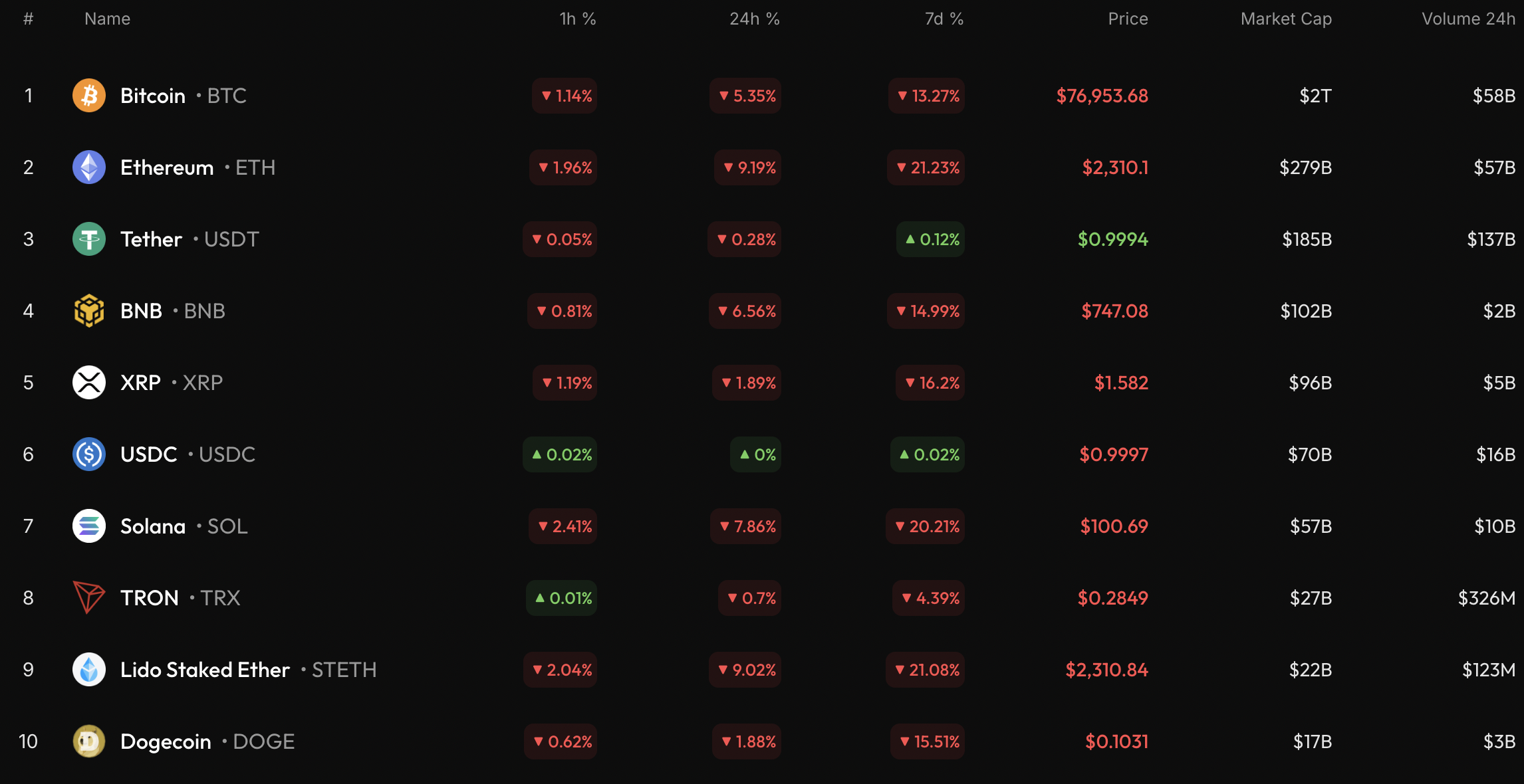 截至发稿时,比特币交易价格为77,118美元。