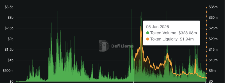 与此同时,DeFi领域中AVAX代币交易量与流动性持续波动。根据DeFiLlama最新数据,其代币交易量已达3.28亿美元,流动性为194万美元。这些数据表明市场波动显著,代币交易量在某些时点急剧上升。此类活跃度的提升,可能意味着去中心化金融平台正获得越来越多关注,这或将支撑Avalanche未来的价格。