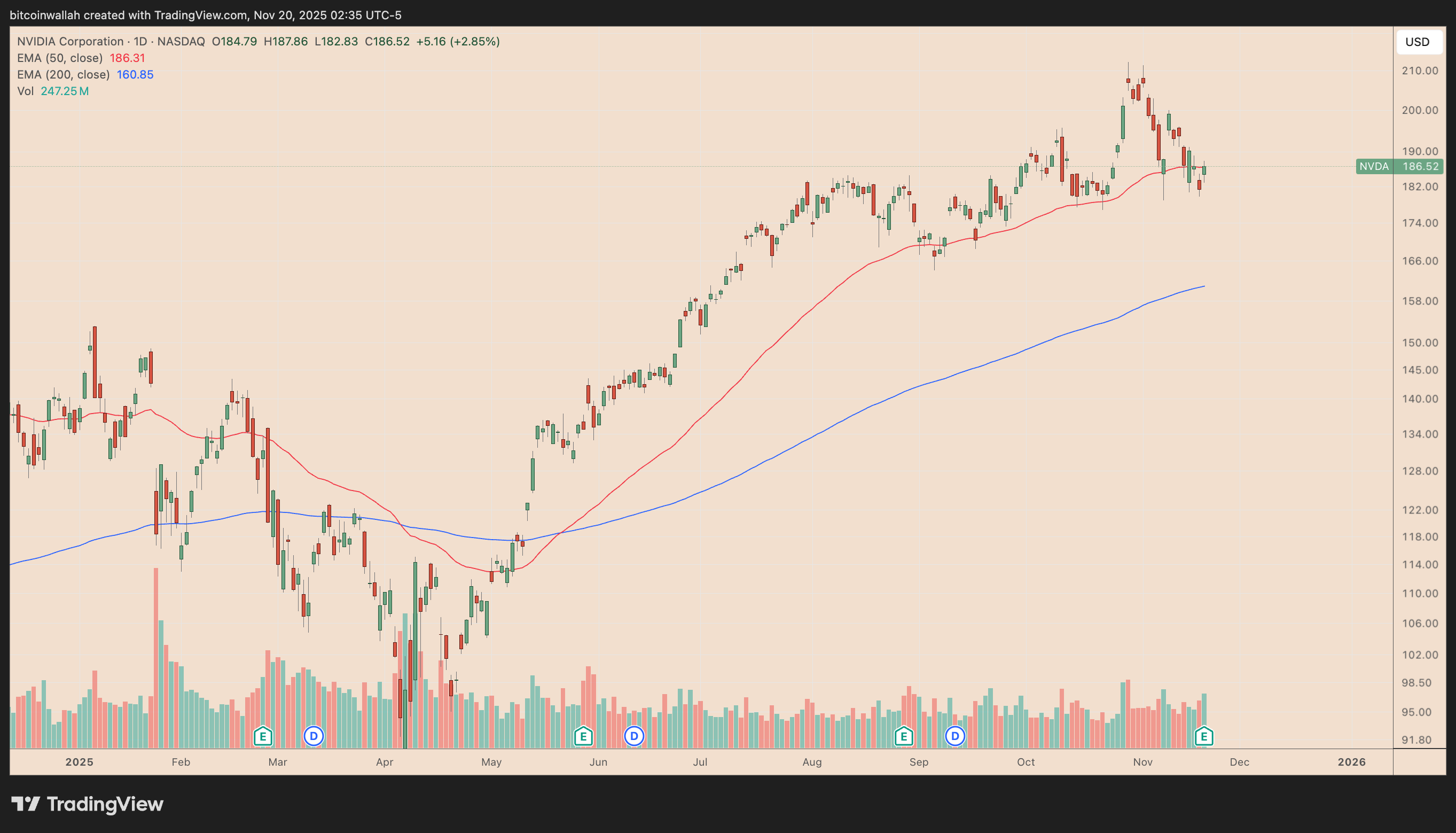 这两个时期都受到宏观经济担忧驱动——最初是中美贸易战,如今是对AI泡沫的忧虑——凸显外部因素对加密市场的重大影响。英伟达的乐观营收展望暂时缓解了市场担忧,但更广泛的抛售仍在持续。