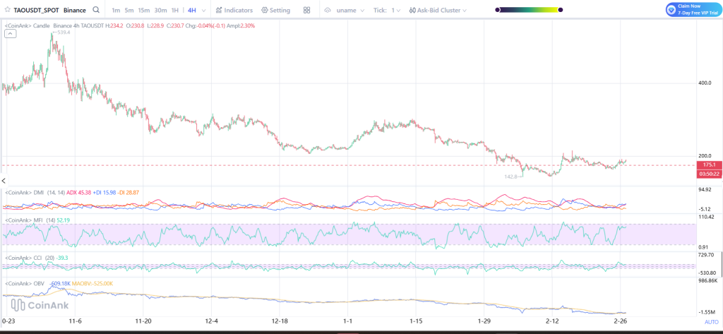 下行方面,如果TAO价格跌破160美元,下一个支撑位在142美元附近。若该水平失守,价格可能跌向120至125美元区域。