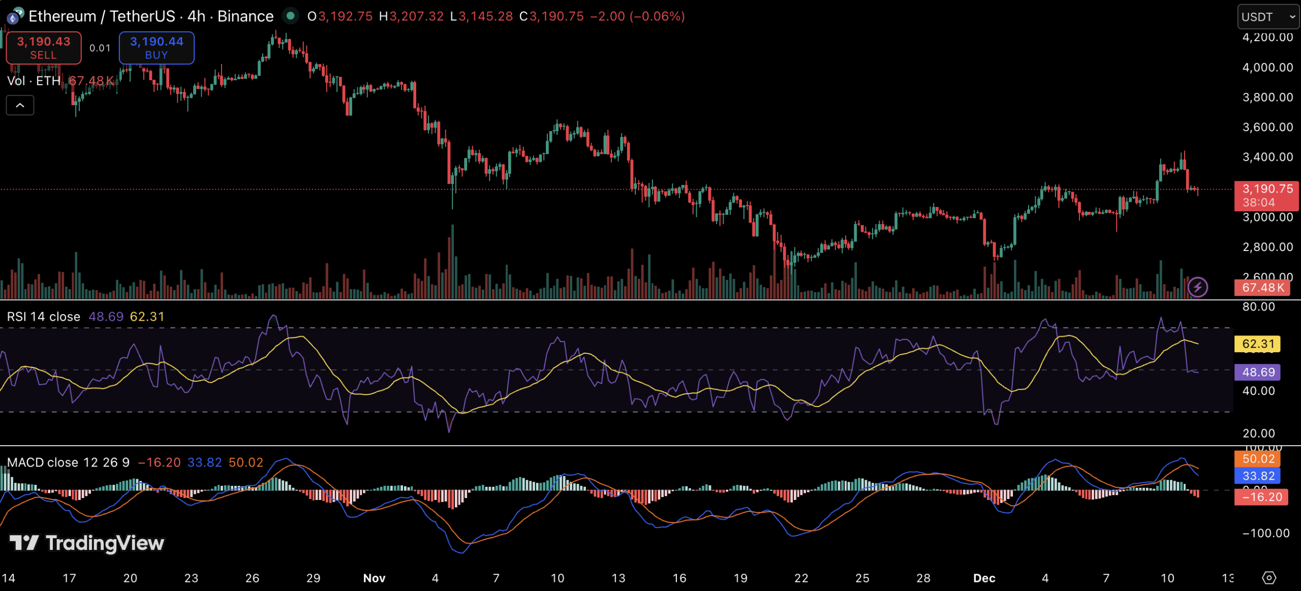 在短暂下探3150美元附近后,ETH于周四回升至3190美元。交易员指出,这得益于结构支撑的改善、ETF资金流趋于稳定,以及卖方力量减弱的迹象。