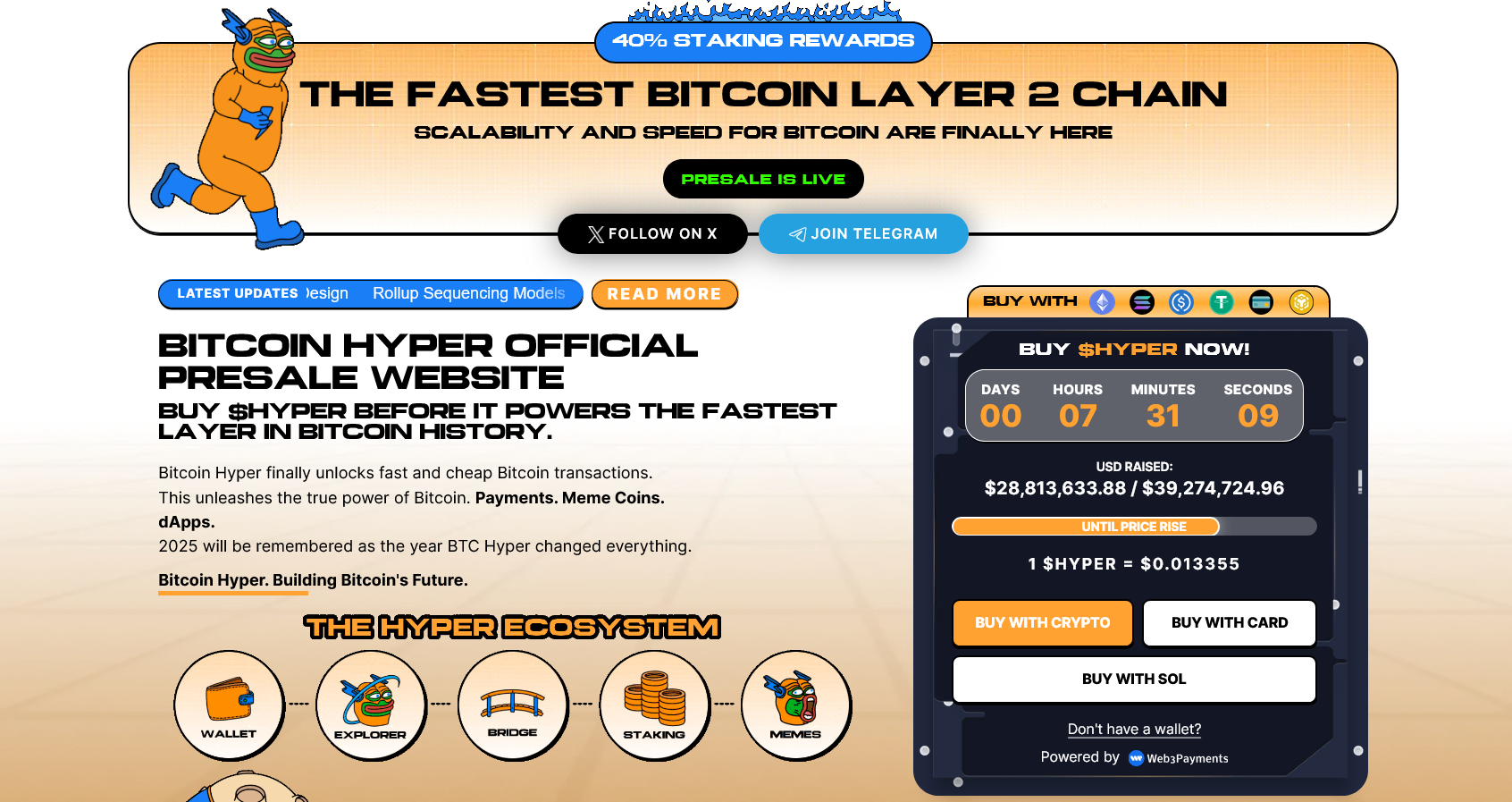 分析师将Bitcoin Hyper列为当前最具潜力的预售项目之一,其募资额已突破2820万美元,正逼近3000万美元里程碑。当前预售阶段HYPER单价为0.013355美元,质押年化收益约40%。