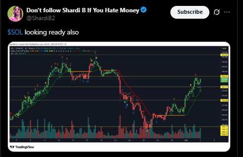 2025年10月上旬,Solana(SOL)价格在经历周涨幅16%、月涨幅14%后稳定在234美元附近。市场普遍将200美元区域视为支撑本轮上涨的结构性底部。分析师指出,若能收复240-245美元区间,可能预示价格将向260美元或更高水平迈进。