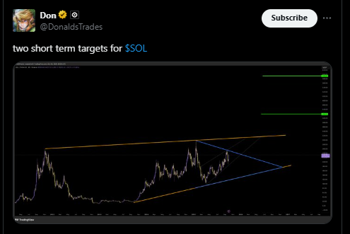 若SOL能有效突破245美元阻力并维持量能放大,分析师认为市场将确认与周期预测相符的突破行情。楔形形态的中期目标指向300美元,这与历史同类技术条件下的扩张幅度一致。