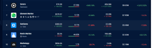Element、Getgems和Ronin NFT市场分列第七至九位,过去30天交易量分别为792万美元、546万美元和252万美元。Marketapp以218万美元交易额位列第十。