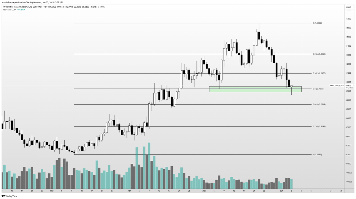 知名分析师Altcoin Sherpa:Fartcoin逼近关键支撑位