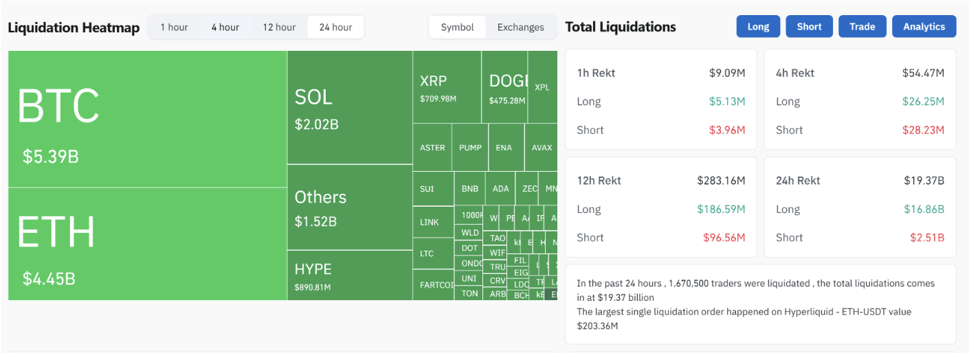 加密货币市场24小时内遭遇200亿美元历史性爆仓