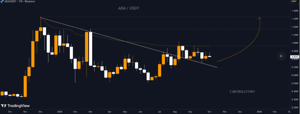 卡尔达诺(ADA)在突破长期压制趋势线后持续展现韧性,多位分析师预测其可能迎来向1.30美元的价格冲刺。市场观察家BullStar在TradingView发布的研报中强调,经过数月的横盘整理,ADA正显现出不断增强的上行动能。