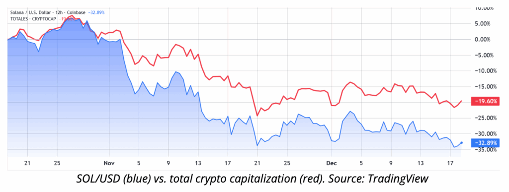如果你感觉加密货币市场近期有些不对劲,这是可以理解的。尽管ETF的推出、机构买入以及亲加密货币的监管政策确保了所有牛市要素都已就位,但总市值仍较10月高点下跌了32%。尽管生态系统的势头本应推高价格,但Solana在12月19日仍然下跌,而Solana的价格预测似乎将矛头指向了杠杆效应。事实上,SOL的长期前景现在取决于无人能有把握控制的因素。