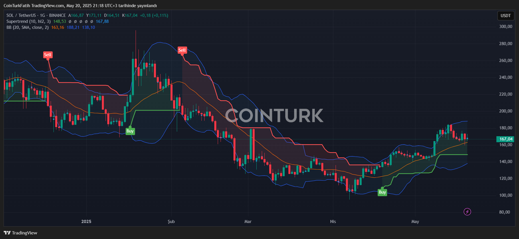 SOL代币目前徘徊在167美元附近,168美元是其维持上升趋势的关键支撑位。若能成功守住这一水平,可能会测试173美元和188美元的新高点。在接近历史高点之前,SOL必须稳固收复203-205美元区间。未来几小时内可能会出现意外发展。