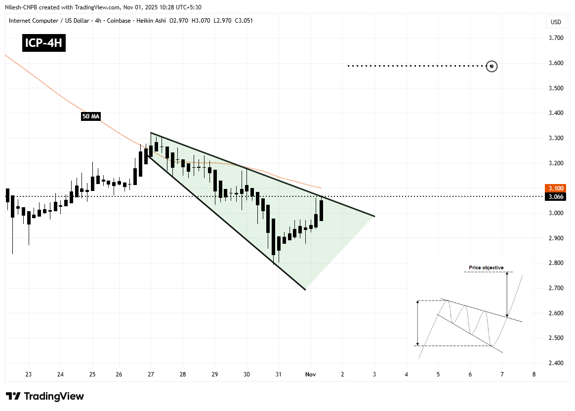 值得注意的是,50周期移动平均线(MA)位于3.10美元附近,形成买家需要攻克的即时阻力位。历史数据显示,该水平曾多次成为ICP反弹的短期障碍。