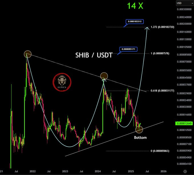 预测取决于Shiba Inu价格保持其较低的趋势线支撑并在0.618斐波那契水平附近收复阻力位,目前为0.00003美元。突破该区域可能会将SHIB价格推向0.000085美元的水平,并可能从其当前估值中抹去零。技术指标进一步支持了这一前景,最高山寨币价格目前在历史上强劲的支撑区域附近盘整。这些区域之前曾引发过价格的大幅上涨,根据当前的图表结构,加强了潜在突破的可能性。