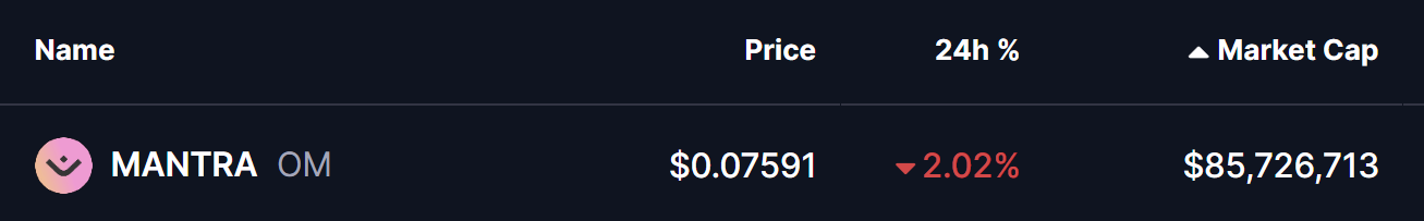 加密货币市场今日出现小幅回调压力,比特币(BTC)和以太坊(ETH)均下跌超1%。这波广泛回调已蔓延至多个山寨币,包括Mantra(OM)。尽管OM价格呈现小幅下跌,但其低时限技术结构暗示着表层之下更具建设性的走势——一种谐波形态似乎已准备好推动潜在的上行延伸。