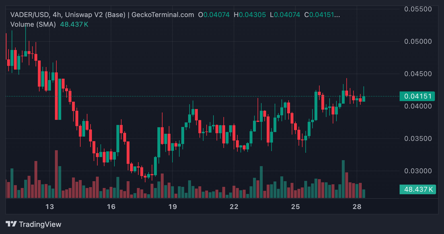 VaderAI是与Virtuals生态系统关联的质押协议。用户质押$VADER可赚取Virtual Genesis点数,质押时间越长每日收益越高。这些点数可优先获得代币分配和生态功能,其中5%的创世点数专属于VADER质押者。