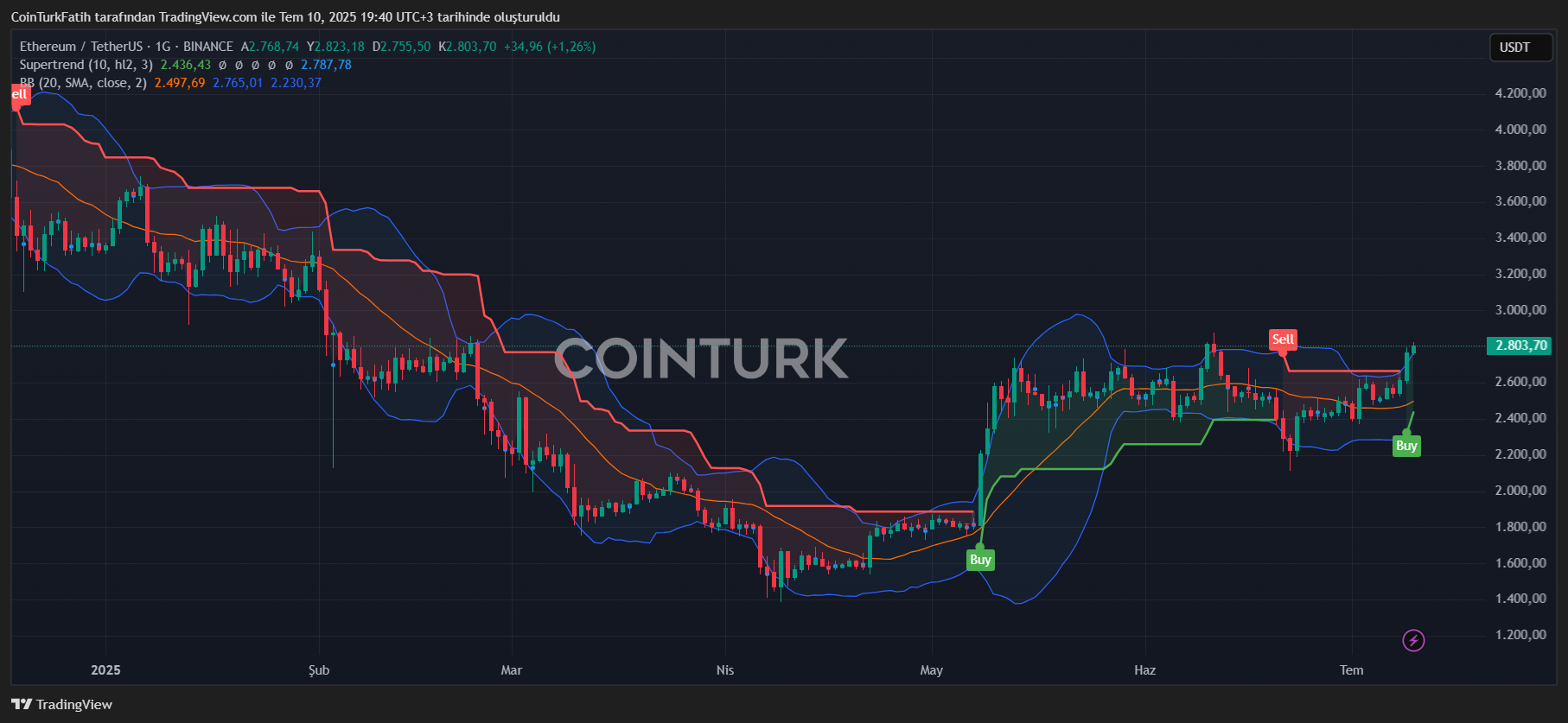 以太坊(ETH)的关键点位为2,850美元。当前价格为2,804美元,若能吸引更多买家,可能突破该阈值并有望触及3,067美元和3,522美元的目标。这一复苏对山寨币整体有利,或将带动全面上涨。今日ETH能否显著突破2,850美元将决定其峰值高度。