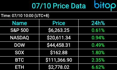 比特币再次测试11.2万美元关口,交易所数据显示今晨最高触及111,999美元,超越5月22日创下的111,980美元前高。以太坊涨至2,778美元,24小时涨幅6.6%。