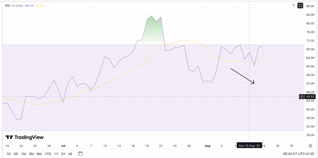 这种现象往往预示着上升趋势仍具韧性。当前RSI读数66尚未进入超买区域,表明价格仍有上行空间。