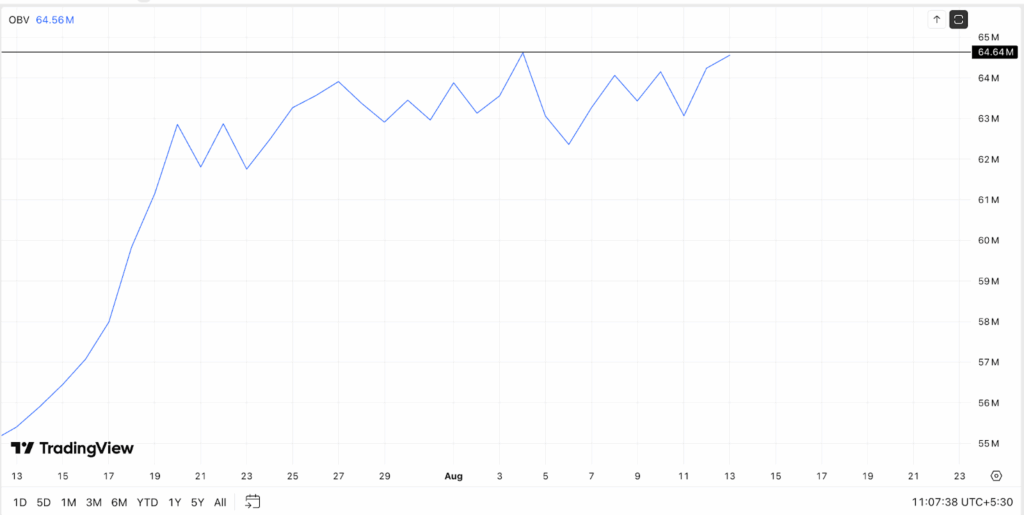 能量潮指标(OBV)持续攀升,表明买盘力量明显强于卖压。