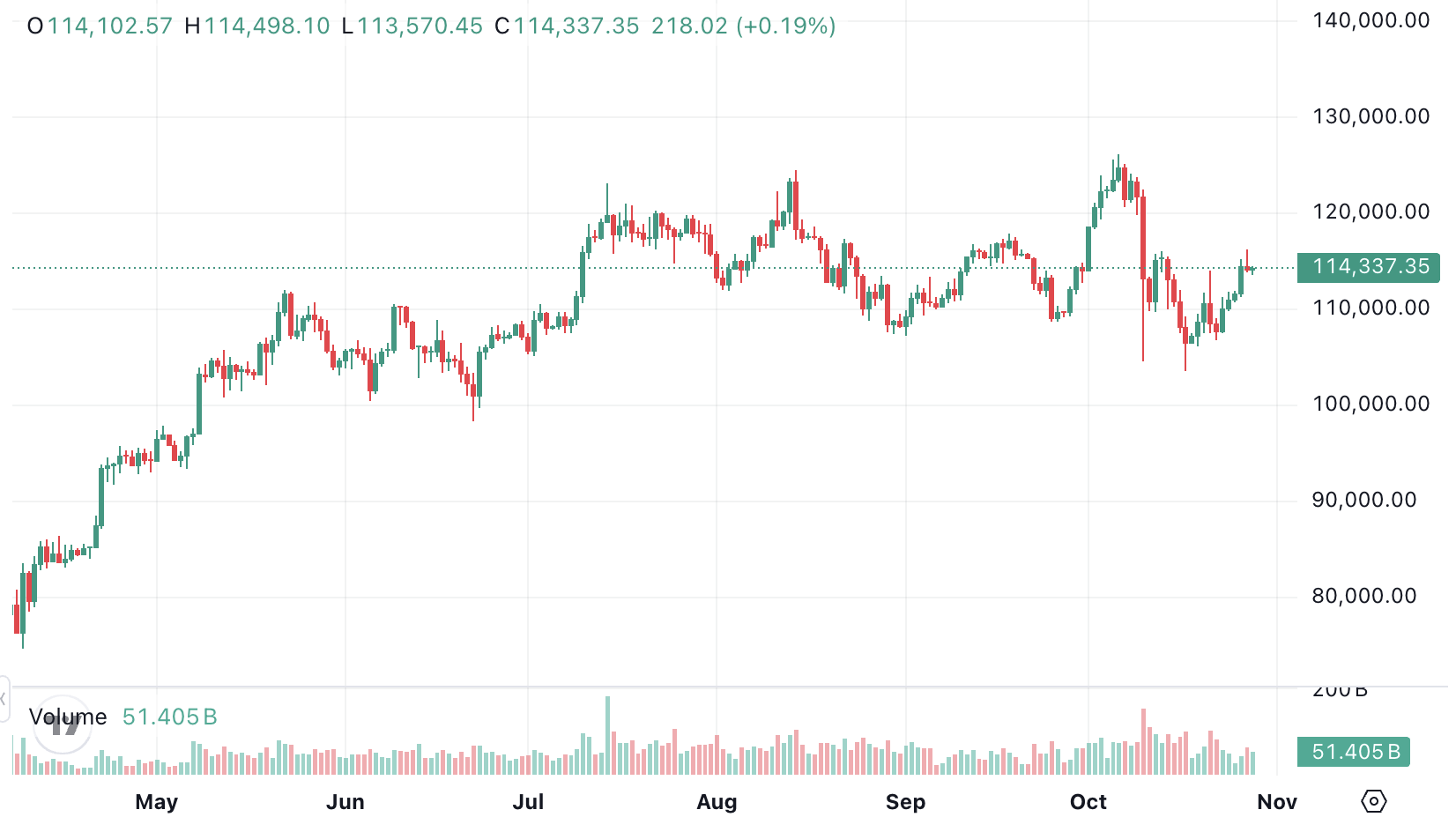 比特币持续在11.4万美元附近窄幅波动,等待本周美联储利率决议提供方向指引。市场普遍预期美联储将实施年内第二次降息,基准利率可能下调至4.00-4.25%区间。与此同时,以太坊、Solana和BNB等主流山寨币普遍下跌约2%,领先的模因币狗狗币也未能幸免。