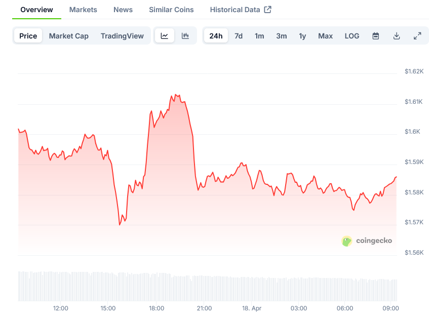 跌破通道下边界可能会加速ETH的下跌。然而,突破上边界并重新夺回2000美元水平可能预示着看涨反转。目前,价格在1580美元支撑位附近显示出一定的韧性。如果多头获得动力,ETH可能会测试1904美元的阻力位,然后挑战心理上重要的2000美元关口。然而,如果看跌压力持续,价格可能会在短期内跌向1526美元。