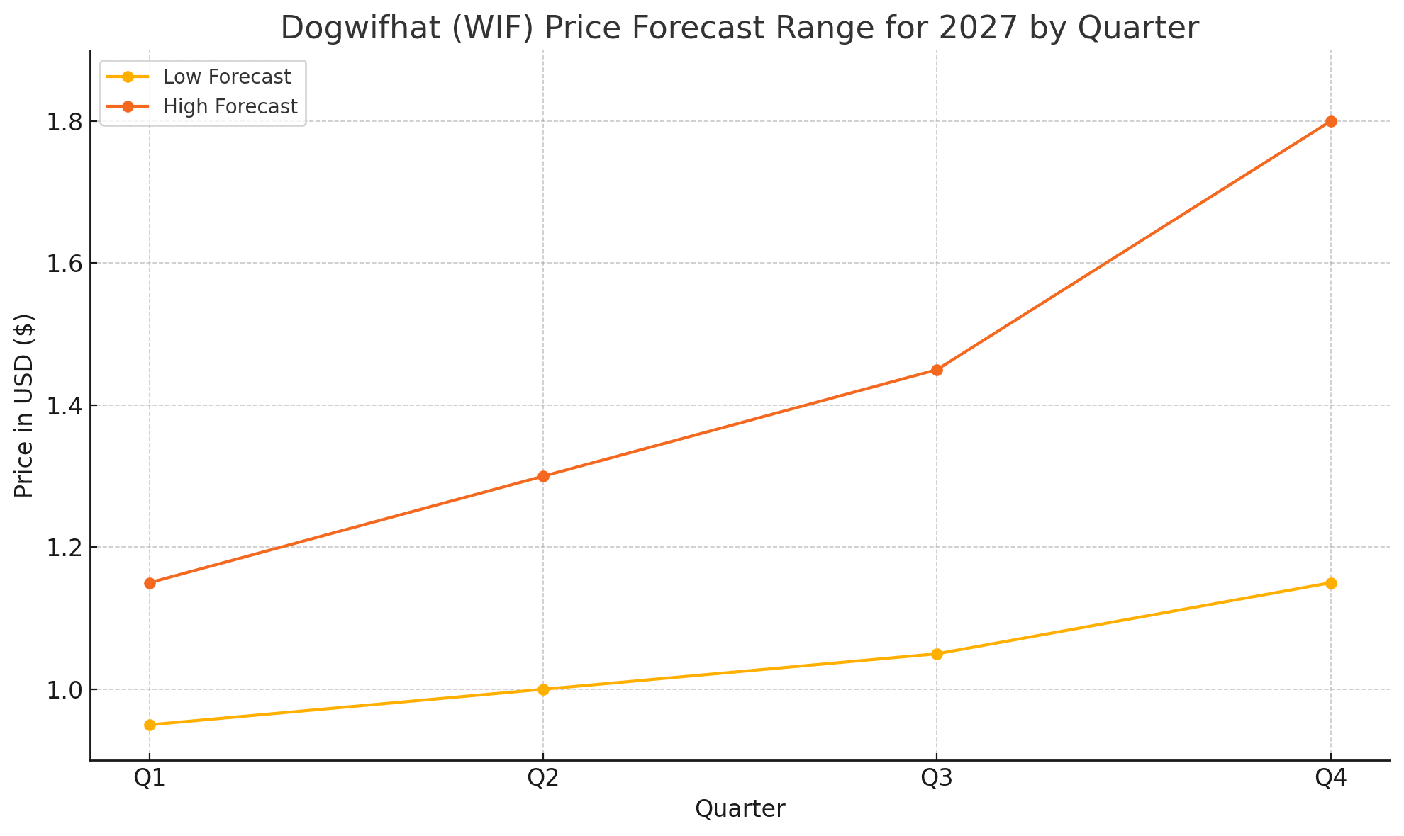 2025年中期,随着基于Solana的迷因币$WIF强势反弹至1美元关口并超越多数同类代币,"Dogwifhat价格预测"搜索量激增。在社区热议、大额钱包异动和新交易所上线的推动下,交易者正密切关注该代币2025至2027年的发展路径。本分析结合历史表现、链上数据、新闻动态及外部预测,绘制未来三年的合理目标。