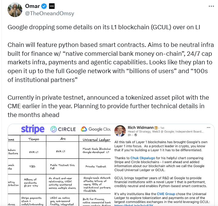 分析师认为此举不仅仅是一次商业实验。它代表了将现有金融系统与基于区块链的基础设施连接起来的真正尝试。谷歌Layer 1区块链通过提供基于Python的智能合约和恒定的交易价格,旨在吸引那些寻求性能而不需要过度复杂性的开发者和组织。