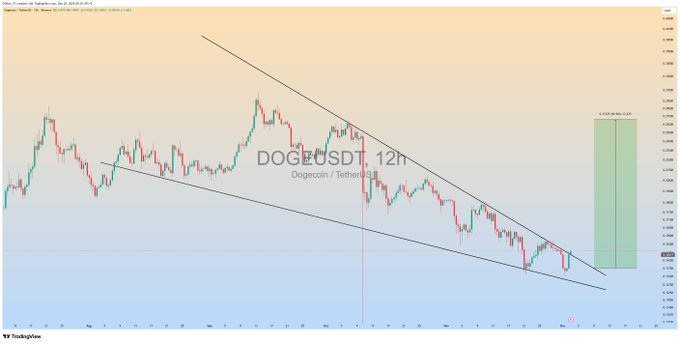 DOGE测试下降楔形关键边界,下行势头近期趋缓