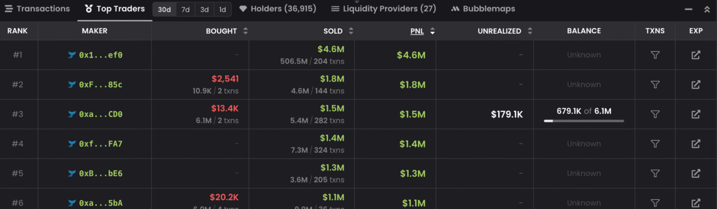 以Buidl为例,顶级交易者8grrG用4100美元投资获利6.1万美元——短短几天获得超15倍收益。近期还有更惊人案例:BSC链项目BinanceLife有交易者本周将2500美元变成180万美元。