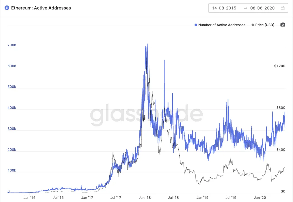 这对DeFi(去中心化金融)来说至关重要,因为如果没有人使用,重建金融系统又有什么用呢?由于大多数DeFi都建立在以太坊上,使用以太坊网络的人数成为衡量开放式金融实际规模的关键指标。