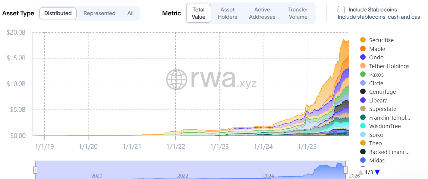 Securitize以33亿美元的非稳定币RWA价值领跑2025年,进一步巩固了其作为最符合机构需求的代币化门户地位。其旗舰产品Securitize BUIDL更是录得26亿美元总锁仓价值,充分体现了投资者信心。该协议凭借完善的美国国债和机构基金产品组合占据主导地位,随着投资者持续转向链上收益工具,这些产品资金流入显著。作为行业合规标杆,它成为传统机构涉足RWA的首选平台。