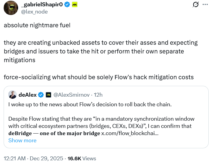 deBridge创始人Alex Smirnov呼吁Flow区块链验证节点暂停处理交易,直至Flow基金会为受链上争议性回滚影响的用户制定补救方案。此次回滚是针对12月27日发生的390万美元盗币事件作出的回应,当时攻击者利用Flow执行层漏洞通过多个跨链桥转移了链上资金。