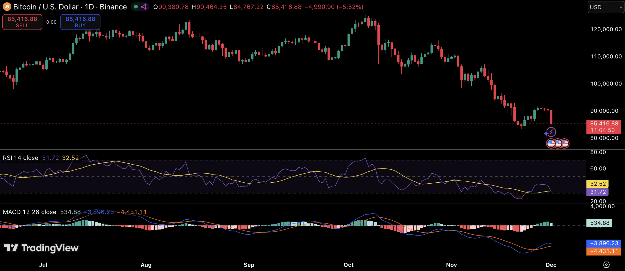 本次收购时机备受关注。比特币自近期高点大幅回落后始终在8.5万美元区间震荡,多项技术指标仍呈负面态势。日线RSI徘徊于超卖区域,显示卖压近期激增;MACD持续显现看跌交叉形态,这通常是价格疲软的前兆。此类指标反映出市场普遍恐慌与获利了结情绪——这种环境通常阻碍机构大举入场。