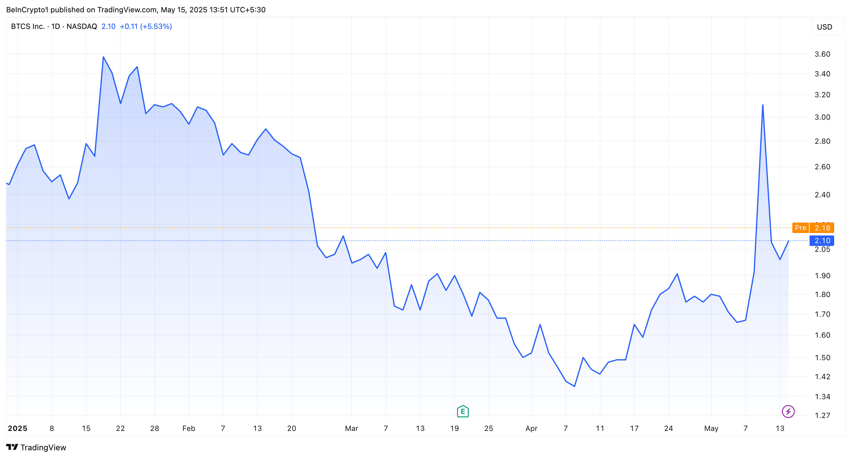 虽然以太坊并未从BTCS的新闻中受益,但BTCS自身的股票却有所上涨。这反映了投资者对公司战略转型的信心。Google Finance数据显示,BTCS股价上涨了5.5%。然而,年初至今,其价值已下跌14.9%。