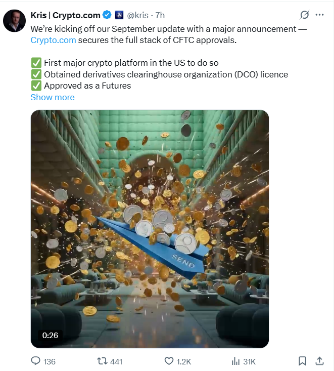 9月份,Crypto.com成功获得CFTC颁发的衍生品清算机构执照及期货经纪商资质,使其成为美国首个集齐这些关键许可的主流平台。这些资质允许该公司为客户提供涵盖交易、清算和风险管理的一站式衍生品服务。