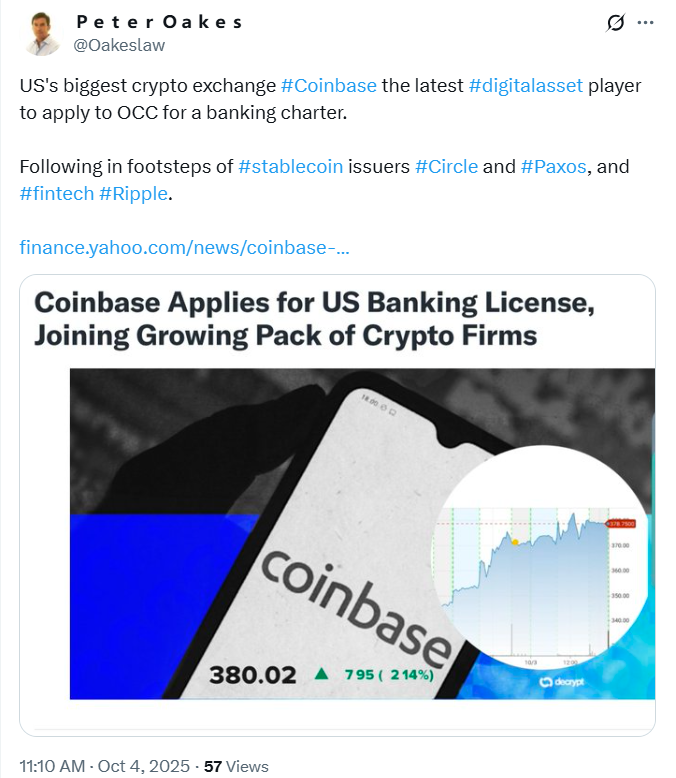 稳定币发行商Circle、Paxos及金融科技公司Ripple Labs之后,Coinbase近期已向OCC提交全国性信托章程申请。值得注意的是,若获批该资质,将允许其自主管理储备金、托管机构资产,并扩展支付及相关服务范畴。该公司特别声明并无转型银行的计划,强调监管合规将为其业务拓展提供明确框架。