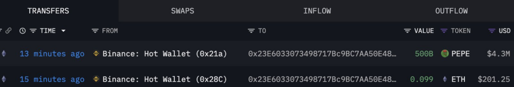 Pepe Coin巨鲸从币安提取5000亿枚代币