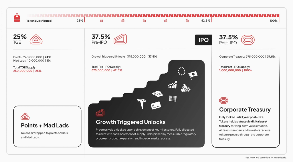 截至2026年初,TGE时间线仍未公布。这一延迟是刻意的,因为代币发行明确与监管准备就绪和运营成熟度挂钩,而非市场条件。