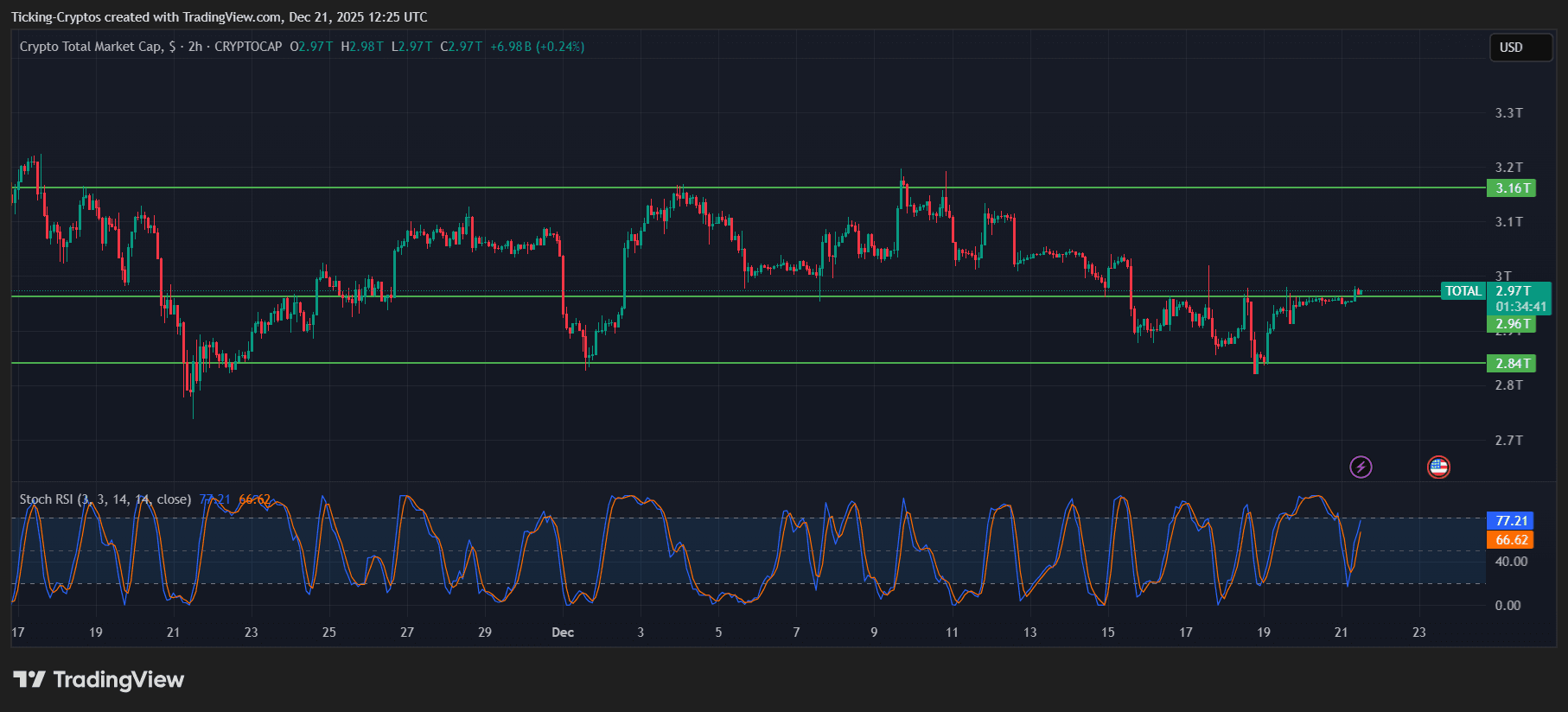 观察全球加密货币总市值图表,可见市场正处于典型的横盘整理阶段。