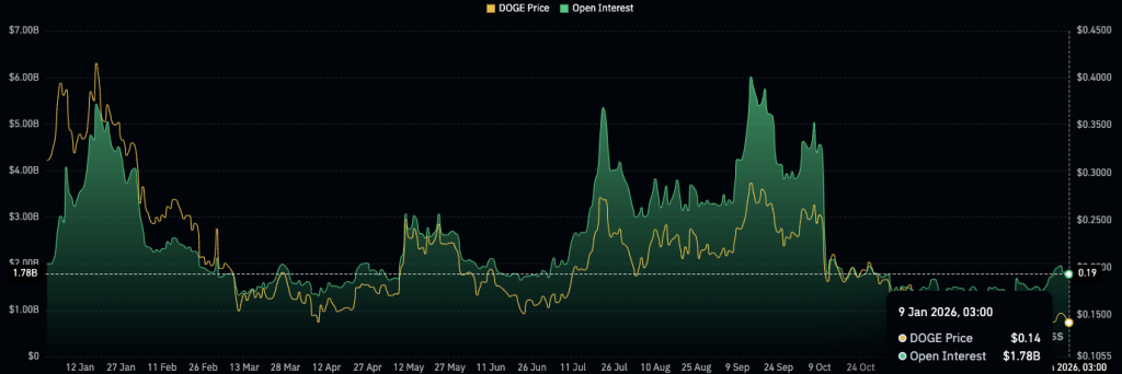 即使狗狗币价格已从2025年0.70美元附近的高点显著回落,市场持续强劲的关注度显示交易员仍在密切观望。部分交易者可能视其为快速反弹的机会,而另一些则可能押注进一步下跌。
