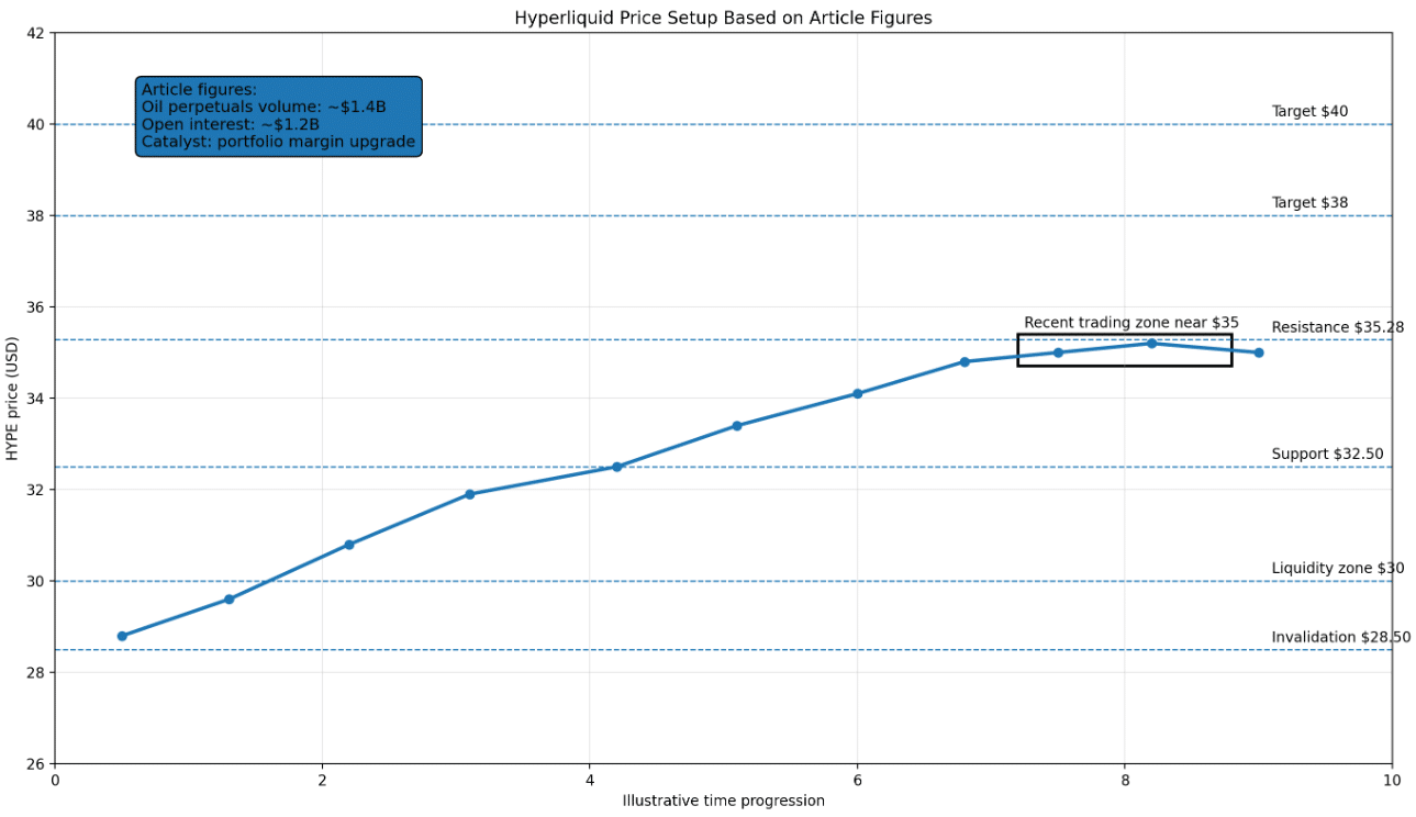 近期涨势伴随HYPE攀升至35美元附近,日内高点触及35美元,24小时内涨幅约5%。这一动向与平台活动的激增同步,尤其是在石油永续合约领域,交易量飙升至14亿美元以上。这之所以重要,是因为它表明交易者并非仅将此地用于加密货币敞口。在宏观驱动的波动时期,他们也依赖于此,这赋予了平台更广泛的用例,并为Hyperliquid价格提供了比典型的山寨币短暂反弹更可信的基础。