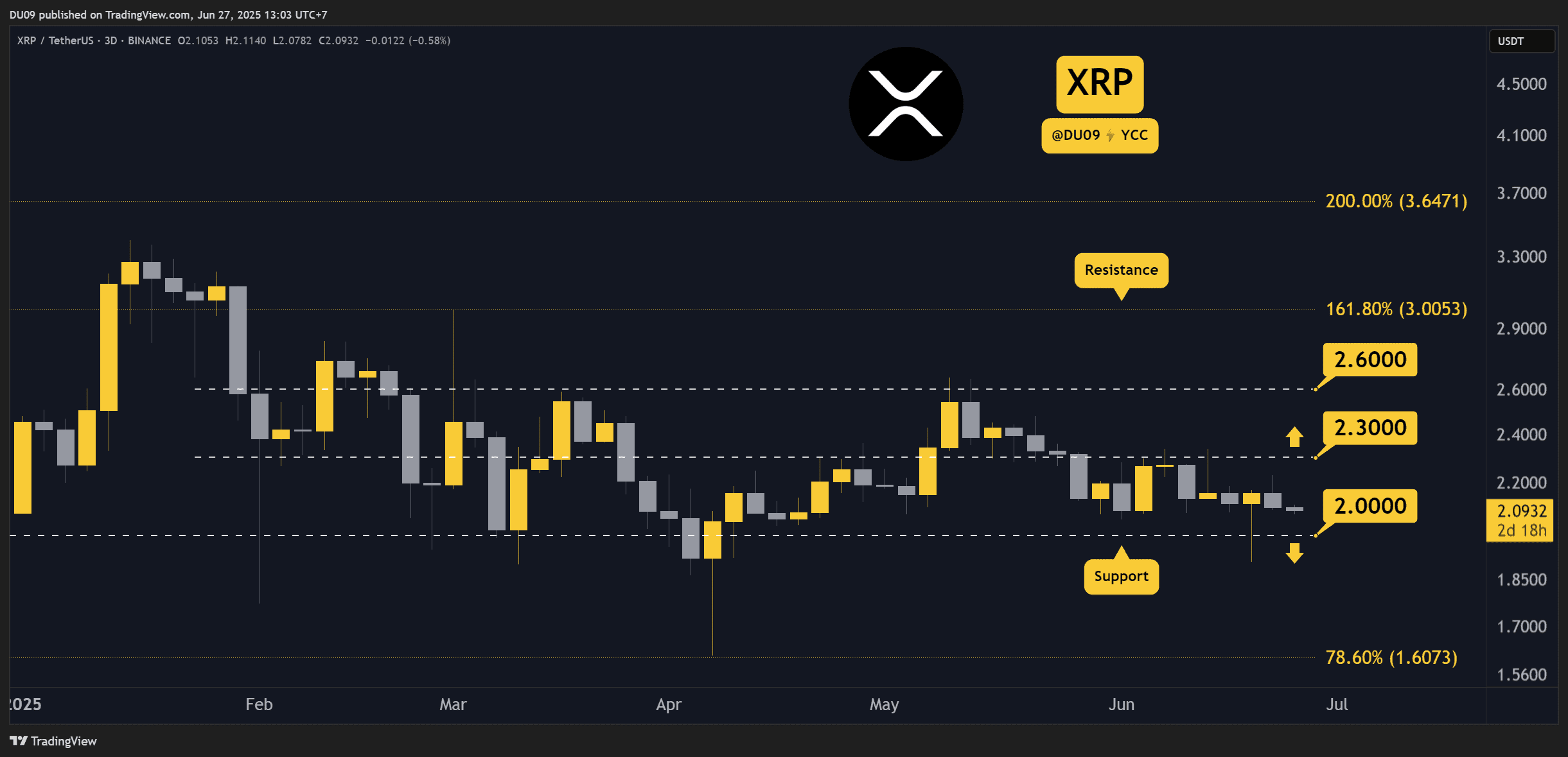 过去数月持续在2美元附近徘徊,走势渐趋稳定币化。尽管本周收跌4%,但买家始终坚守2美元支撑位。在如此平缓的趋势中,动量指标难以提供有效方向指引,成交量反而更具参考价值——自2024年12月创下历史高点后,成交量持续萎缩。虽然量价背离通常预示下行风险,但关键支撑未破前不宜过早定论。历史数据显示XRP从未如此长期维持在2美元上方,但需警惕其2024年从0.5美元飙升至3美元的暴涨仅用一个月,周线图上留下的巨大缺口可能在未来回补,暗示跌破2美元的可能性依然存在。