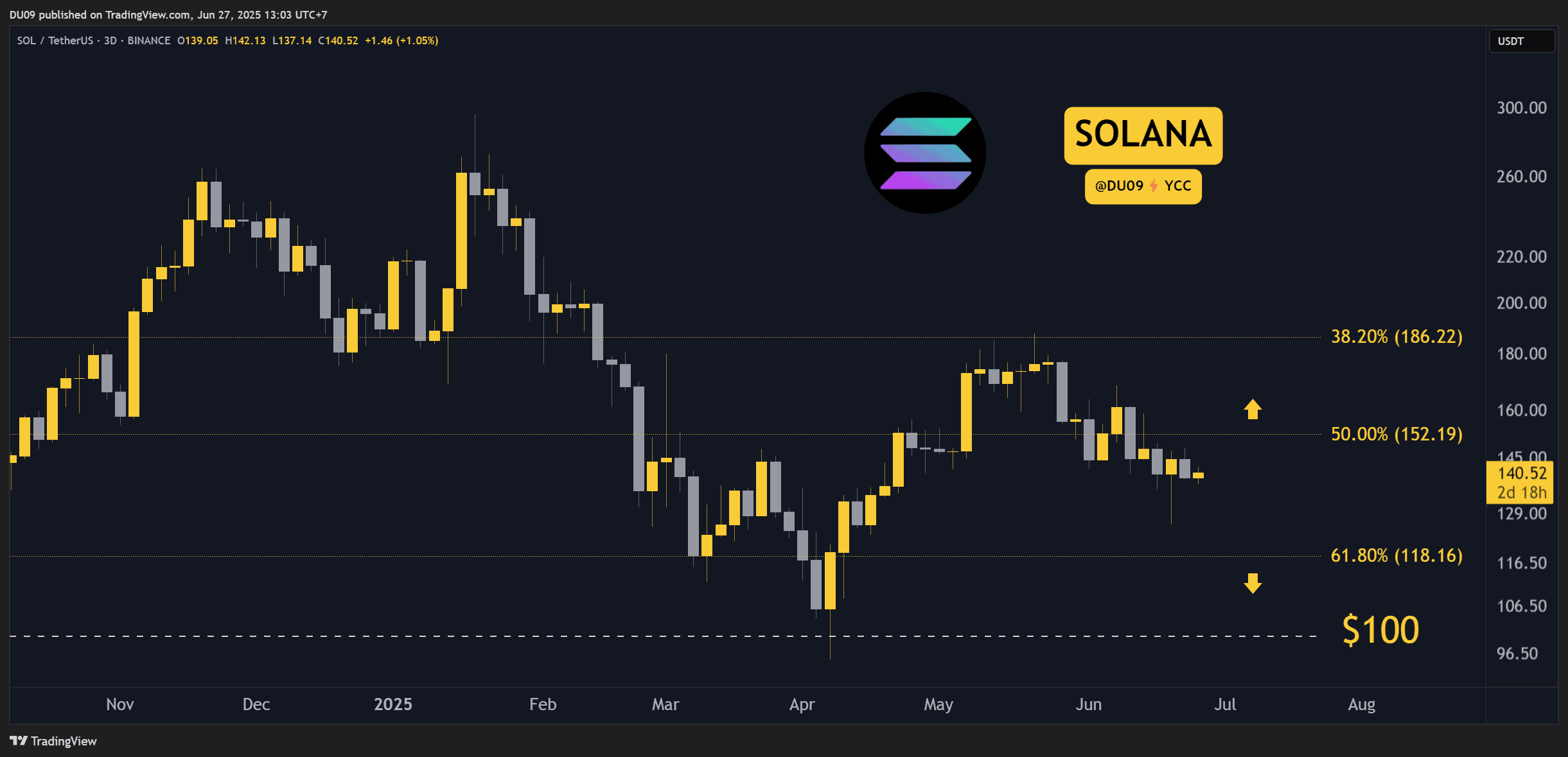 本周下跌4%,多头正第三次尝试突破152美元阻力位。前两次冲高均在150美元附近遭遇强力抛压,显示市场存在逢高卖出倾向。积极信号来自日线MACD即将形成金叉,若未来几日确认,或为多头提供新的上攻机会。若再次失败,130和118美元支撑位将成为关键防线。目前Solana仍处于下行通道,需将当前阻力转化为支撑,才能为后续上涨奠定基础。