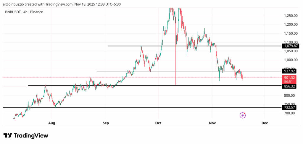 BNB当前交易价格为907美元,已跌破910美元的关键支撑位。现在让我们揭示接下来的目标价位。
