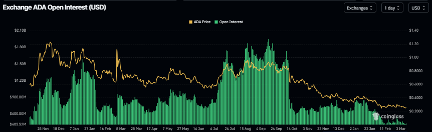 衍生品数据揭示了有趣的矛盾。未平仓合约增加了3.87%,达到4.2845亿美元,而交易量则大幅激增33.39%,达到7.7984亿美元。交易量的激增恰逢卡尔达诺宣布其与Archax的合作关系,该合作涉及一家受英国金融行为监管局许可的数字资产平台。