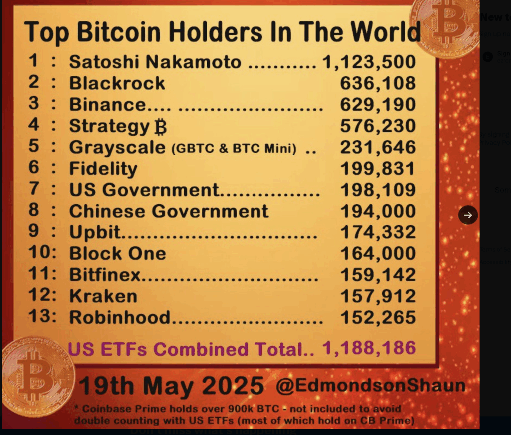 通过现货比特币ETF(IBIT),贝莱德的比特币投资组合快速增长,吸引了众多大型机构的关注。目前,该公司持有636,108枚比特币,几乎接近中本聪估计持有的1,123,500枚比特币。基于此,贝莱德的比特币投资组合已超过币安、MicroStrategy和灰度。